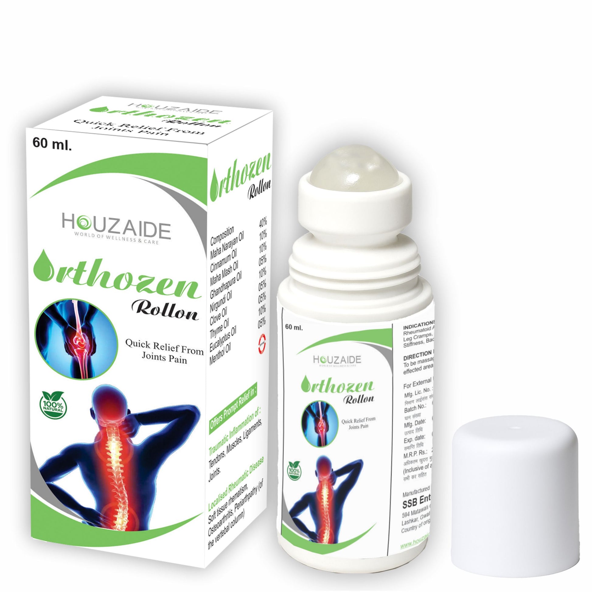 Houzaide Orthozen Ayurvedic Pain Relief Roll-On Oil – 60ml | Fast Relief for Joint, Muscle, Knee, Back, Neck & Shoulder Pain | Herbal Formula with Researched Plant-Based Ingredients